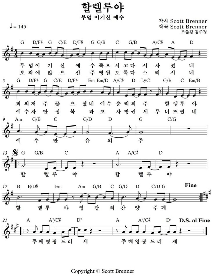 할렐루야 할렐루야 영광의 찬양 주께