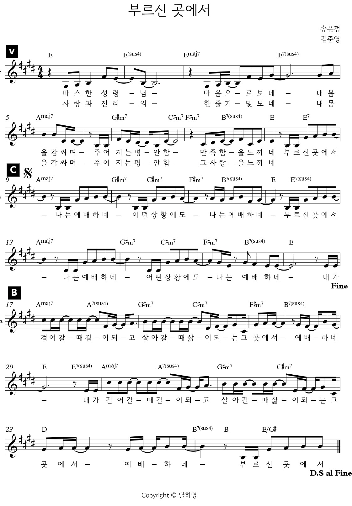 4 부르신곳에서(후렴): 이어서-B-B-C-C-C(약하게)