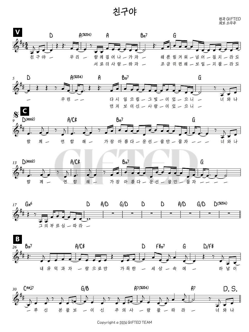 2 친구야: I1(어쿠스틱)-V1-V2-C-INTER8-V1-V2-C-C-B-C(약하게)-C(강하게)-OUT8