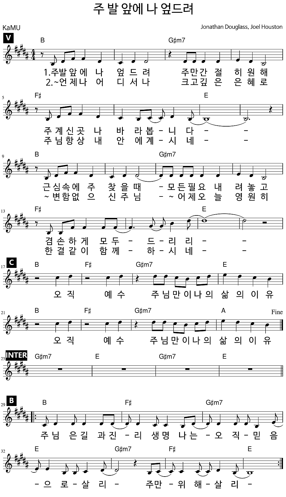 주 발 앞에 나 엎드려 주만 간절히 원해